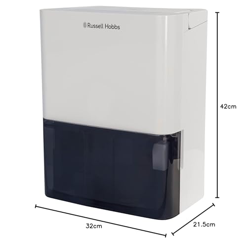 Russell Hobbs RHDH1001 10 Litre/Day Dehumidifier for Damp/Mould & Moisture in Home, Kitchen, Bedroom, Office, Caravan, Laundry Drying, 30m2 Room, Smart Timer, White