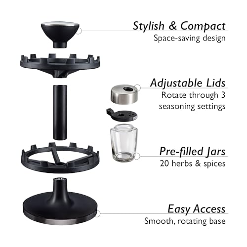 Cole & Mason 20-Jar Filled Spice Rack Carousel Adjustable Lids & Rotating Stand