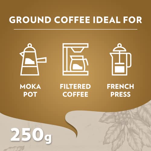 Lavazza, Qualità Oro, Ground Coffee, 6 Packs of 250 g, Ideal for Moka Pot, Filtered Coffee and French Press, with Aromatic Notes of Fruit and Flowers, 100% Arabica, Intensity 5/10, Medium Roast