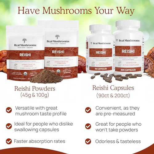 Real Mushrooms Reishi Mushroom Capsules - Handpicked Organic Mushroom Extracts -