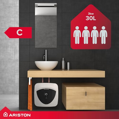 Ariston ANDRIS LUX ECO 30 L Oversink Electric Water Heater 2.5kW, Included Kits A,B & C, A Class Erp Rating, Copper Heating Element, Manufactured To Be Installed In UK- 3820018.
