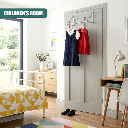 GEEZY Over Door Hanger Rail - Stainless Steel Clothes Storage Rod, Portable Hanging Bar & Drying Rack for Tops, Jeans, Jackets, Shirts & Coats - Steaming Station Organizer Fits Standard Doors