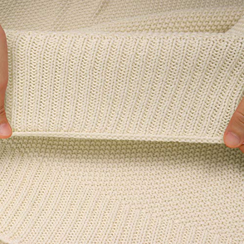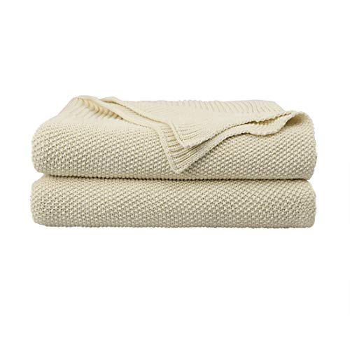 PiccoCasa 100% Cotton Knit Throw Blanket,Solid Lightweight Decorative Throws and Blankets,Soft Knitted Throw Blanket for Sofa Couch, Beige 50" x 70"