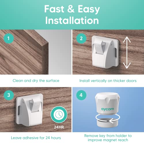 AYCORN® Magnetic Safety Cupboard Locks [10x] for Children [Includes 2X Keys] Child & Baby Safety Proofing for Kitchen, Cabinets and Drawers, 30 Second Install (No Drilling) with 3M Adhesive