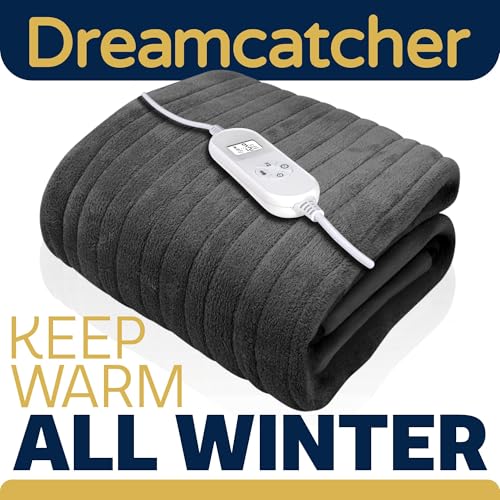 Dreamcatcher Dark Grey Heated Throw Electric Blanket, 160 x 120cm Heated Blanket Machine Washable Soft Fleece Electric Throw Overblanket with 12HR Timer and 9x Control Heat Settings