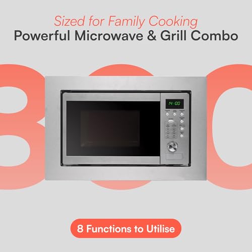 Cookology BIM20LWG Integrated Microwave and Grill in Silver - Compact 20 Litre Capacity - 1000W Grill & 800W Built-in Microwave - 59.5cm Width - 8 Menu Options