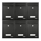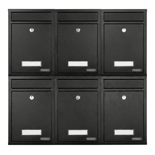 MONZANA® 6x Lockable Post Boxes Wall Mounted Waterproof Letter Boxes with 2 Keys Weatherproof Galvanised Metal With Letter Box Flap & Name Plates Modern Design Mail Post Box System | Black