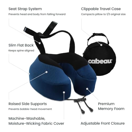 Cabeau Evolution S3 Travel Pillow – Straps to Airplane Seat – Ensures Your Head Won’t Fall Forward – Relax with Plush Memory Foam – Quick-Dry Fabric Keeps You Cool and Dry (Indigo)…