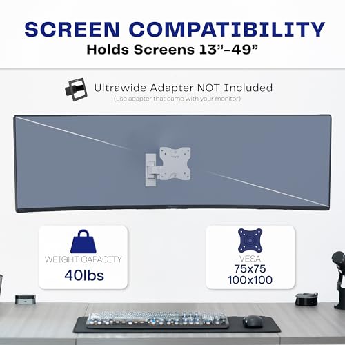 VIVO Full Motion Wall Mount for up to 27 inch LCD LED TV and Computer Monitor Screens, Tilt and Swivel Bracket with Max 100x100mm VESA, White, MOUNT-VW01MW