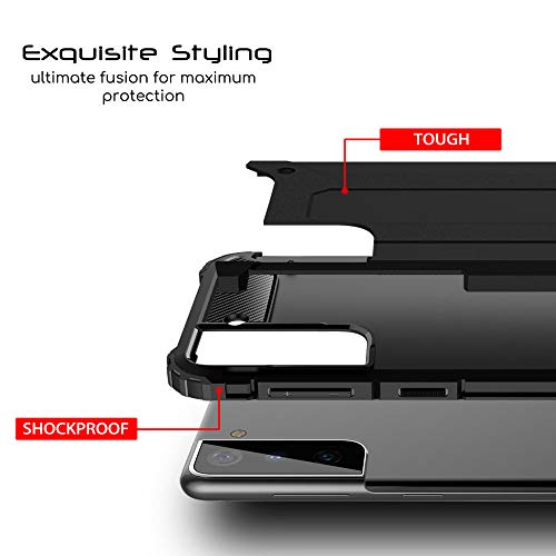TECHGEAR Galaxy S21 Tough Armoured Case - ShockProof, Rugged, Sturdy, Heavy Duty Protective Impact Case Cover Designed for Samsung Galaxy S21 / S21 5G (Black)