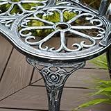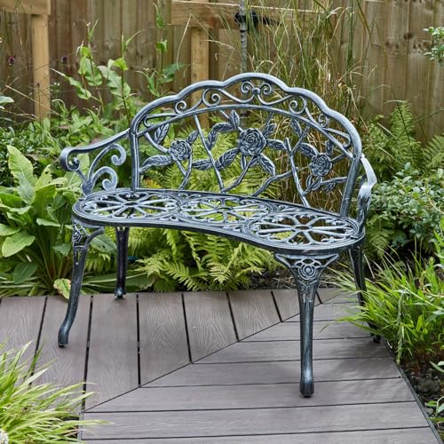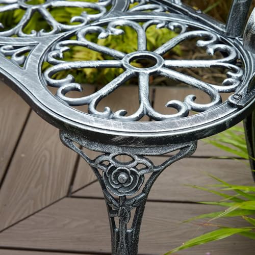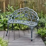 Home Source Cast Aluminium Garden Bench Metal Frame 2 Seater Patio Outdoor Seating in Grey Grey