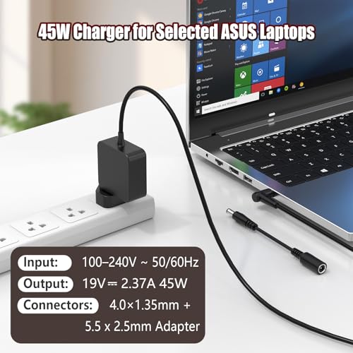 45W Laptop Charger Compatible with ASUS VivoBook 14 15 S14 S15 E203M E406M E410M X553M X553S X540L X540UA X540SA X540LA X556U X556UA Zenbook UX303U UX305 UX305F UX305C 19V 2.37A Power Supply Adapter