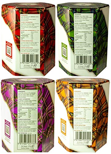 Scottish Haggis Pack of 4: Traditional Scottish, with Venison, Scotch Whisky Flavour and Vegetarian Haggis in a Tin - Tinned Scottish Food Gifts Scotland's National Dish