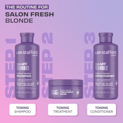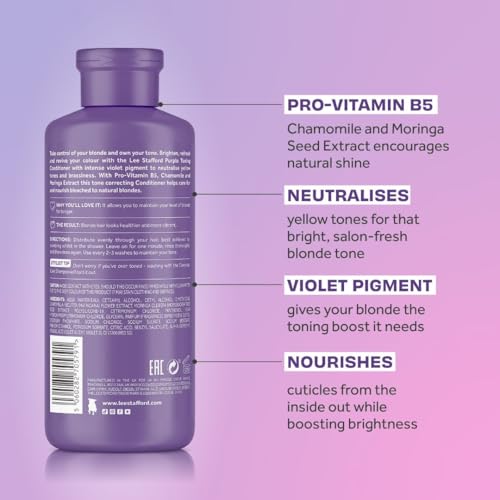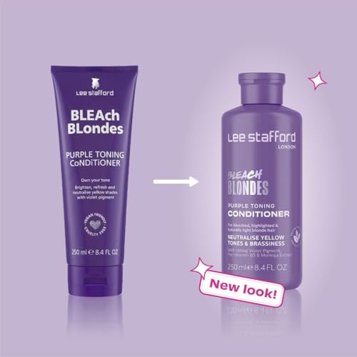 Lee Stafford Purple Toning Conditioner | Bleach Blonde Collection - Neutralizes Brassy & Yellow Tones, Great for Bleached, Highlighted, & Grey Hair, Hydrating & Adds Shine to Dry Damaged Hair, 250 ml