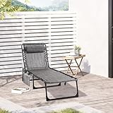 OUTSUNNY Lounger Folding Reclining Camping Bed 5-position Adjustable in Mid Grey Mid Grey