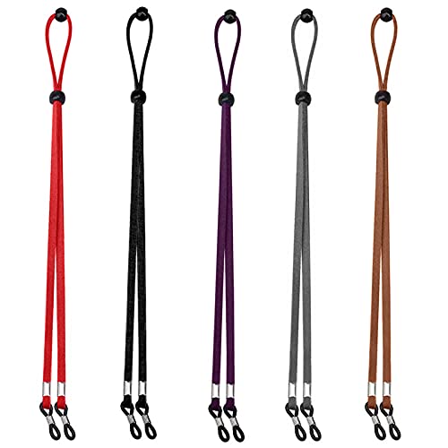 5pcs Eyeglass Strap Chains Cord Adjustable,Sports PU Leather GlassesStrap,Glasses Strap Spectacles Cord Sport Sunglass String Lanyards Eyewear Retainer for Outdoor Activities Reading Glasses