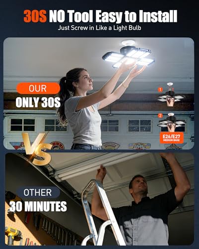 200W LED Garage Light 1 Pack - 20000LM 6500K Deformable Ceiling Lighting Fixture with 12 Adjustable Panels - E26/E27 Bay Light for Garage | Basement | Shop | Workshop | Barn | Warehouse Energy Save