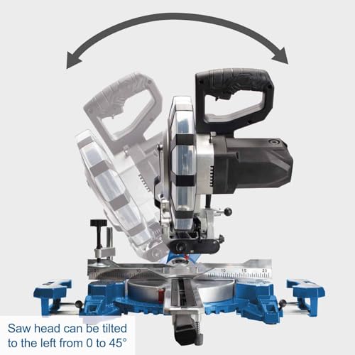 Scheppach HM216SPX Sliding Mitre Saw | 210mm 8" Blade | 2000W | 45° Bevel 340mm Cross Cut | Laser & Quick-Lock | 2 x TCT Blades 24T 48T for Wood, Plastic & DIY